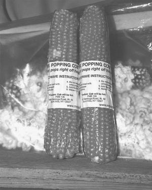 He sells individually wrapped ears of corn. Customers love the novelty of starting with a cob that produces 1 1/2 quarts of popcorn and leaves some of the popped corn on the cob. (It pops in a bowl in the microwave.)