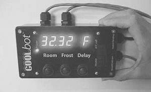 Khosla found out he could make an A/C cooling system work if he constantly monitored it to prevent freeze up. His challenge was to find an automatic way to do so. The solution was the CoolBot, a micro-controller that constantly monitors the walk-in cooler temperature as well as the A/C unit. It checks for frost or freeze up and adjusts the A/C fan and compressor as needed.