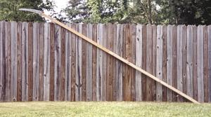 A curved metal pruning saw blade - from an 18-in. hand-pruning saw - bolts onto the end of one of the studs. A series of holes spaced 16 in. apart were drilled into the ends of the two poles where they meet. Two 1/4-in. bolts and wing nuts are used to join them together. The saw's length can be adjusted by changing the position of the bolts.