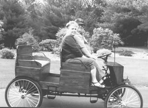 "I've always had an interest in building things but this project was special," says Dennis Gimberline about his home-built horseless carriage. The carriage sports a 12 hp Briggs & Stratton engine with a hydrostat rear end. The frame was built with 1-in. sq. tubing, and the steering gears are from a Deere riding mower. The shift is electrical using a 12-volt actuator and a two-way electric switch.
