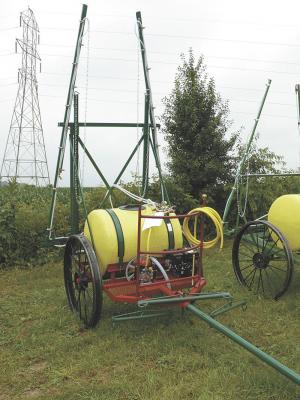 Boomtown also demonstrated this 110-gal. Hi-Rise Sprayer for produce, field crops and orchards. Equipped with a Honda motor, it produces 9.5 gpm and up to 580 psi with 24-ft. booms for up to 57 ft. of coverage. Booms can be raised to a 6-ft. height to spray corn. It's priced at $1,982.