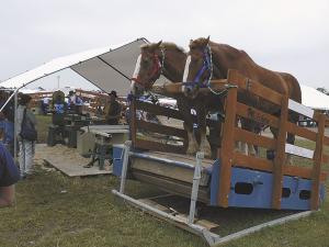 At the recent Horse Progress Days, Weaver demonstrated one and two-horse treadmills powering everything from metal and wood working equipment to grain mills and water pumps. He even had one connected to a condenser for refrigerating food.