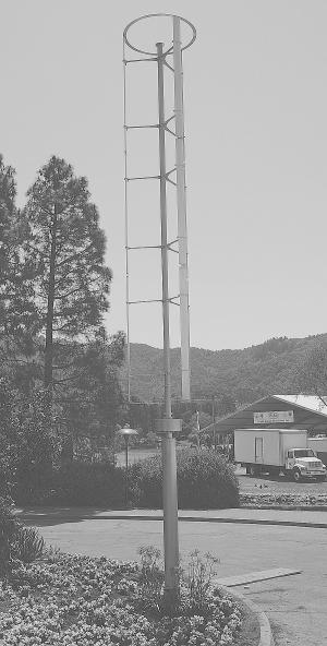 Installation consists of pouring a 6-ft. deep, 2-ft. diameter concrete base with anchor rods for the mounting bracket. The unit on its mono pole is assembled on the ground and winched into place. No guy wires or tower is needed. The company estimates installation costs of around $1,000.
