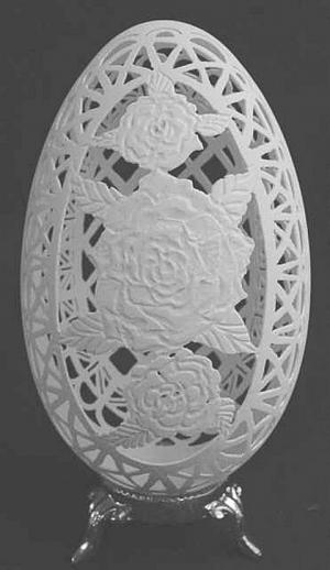 They aren't as delicate as the seashells his mother brought him to carve several years ago when he was a jeweler in South Carolina. When his jeweler's tool didn't work he bought a power carver, an air-driven turbine tool that spins at 450,000 rpm's without vibration. It came with an egg carving video, so Rabon experimented on an ostrich egg, which is the hardest to work with because of its thick shell. When he later tried a goose egg, Rabon "hit the jackpot."
