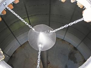Schreiner installs vertical perforated pipes up the center of bins to cool, dry and ventilate grain.