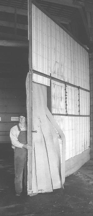 Mark Musser, Beecher City, Ill., needed a tall work space in his shop building where he could work on big machinery during the winter. But he didn't want to heat his entire shop. So he built a large swinging "partition door" out of lightweight, 3-in. thick, insulated siding taken from a refrigerated semi trailer.