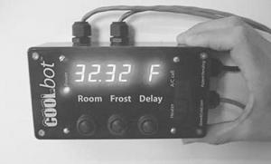 Khosla found out he could make an A/C cooling system work if he constantly monitored it to prevent freeze-up. His challenge was to find an automatic way to do so. The solution was the CoolBot, a micro-controller that constantly monitors the walk-in cooler temperature as well as the A/C unit. It checks for frost or freeze up and adjusts the A/C fan and compressor as needed.