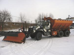 6-WD Army "Snowplow" Truck SNOWBLOWERS Snowblowers 33-6-27 "It's built tough and, with 6-WD, it has a lot of traction," says Chris Kirkland, Mansfield, Ill., who converted an old 2 1/2 ton Army truck into a snow plow/salt truck. It's complete with an 11-ft. wide blade on front and a live floor, stainless steel box on back with a spinner spreader.