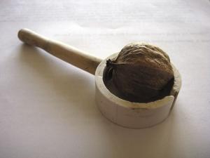 To crack a nut you hold onto the handle with one hand and use your other hand to hit the nut with a hammer. The smashed nut stays inside the nut holder until you can transfer it to another container.