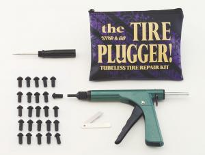 The company also offers a Pocket Tire Plugger that installs mushroom-shaped rubber plugs into all tubeless tires while still on the wheel. The Plugging device "drives" the plug into the hole with the turning of a hex wrench. The plug expands under pressure to fill the punctured area. A firm pull of the stem with a pliers seats the mushroom head on the inner wall, allowing no air to escape.