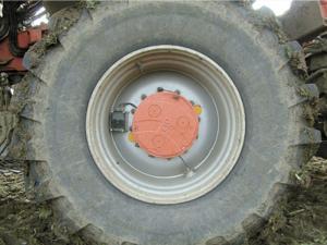The Grasdorf system allows you to automatically or manually adjust tire pressure to maximize soil contact between tire and soil. Allows the operator to adjust to field conditions and load. Data from the sensor is transmitted wirelessly to an electronic readout in the cab. Saves tire life and boosts traction.