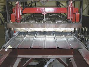Eggmeyer sells his steel roller machines for $20,000 to $35,000 depending on the coil width and number of ribs to be made, plus options such as hydraulic cut off shears.