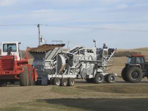 "I run a welding shop and have been around machinery all my life," Hagen says. "Basically it's like a combine except a lot heavier. It's fairly basic with everything tied together in one unit, run by one diesel motor and belt driven."
