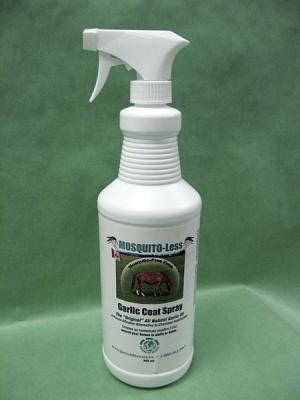 Garlic Coat Spray is an all-natural garlic oil that comes in a 32-oz. spray bottle. It creates an immediate mosquito-free zone around horses both inside and outside the barn.