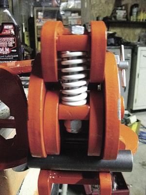 The Tach-n-Go has a hook for the upper bucket mount and a set of receivers for the lower bucket mounts. Nested between each pair of receivers is the innovative Tach-n-Go two-component locking mechanism. A bolt and a compression spring connect the two rotational components.