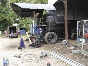 Rock Bands Perform On Combine Stage COMBINES Down Corn FARM SHOW’s British correspondent Andy Sewell recently came across a new use for an old combine He sent us a story about a 1967 New Holland combine that found new life as a stage for rock bands at a music festival in Scotland The modified combine served as one of the stages at the Belladrum Tartan Heart Festival held in Beauly in Inverness-shire in August They called it the “Jock The Reaper” stage Joe Gibbs hosts the festival on his Belladrum Estate He told reporters that farmers are always being urged to diversify so he came up with one of the most unusual diversifications ever A local machine shop made structural modifications such as extending the driver’s platform to provide a DJ stage for music and lighting control The reel was moved forward to make room for a performance stage over the feederhouse A corrugated steel roof – made with curved grain bin panels – extends out over the stage to provide protection in case of rain Multi-colored lights and a sound system were wired into the machine and a set of giant bag pipes were fabricated to sit on top of the combine Finally the big machine was given a new paint job What makes the combine handy as a stage is that it can still be driven from place to place as needed After the festival it was put into storage so it’ll be ready to roll out for next year’s festival Belladrum Estate is a 1 100-acre holiday retreat with cottages and facilities to host weddings and other events For more info go to www belladrum co uk