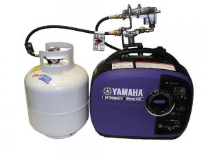 “Our kit fits like a gasket between the carburetor and the engine with an intake for propane and a second one for gas,” explains Jon Richmond, Run Propane, a division of PumpBiz, Inc. “If you run out of propane, just turn off the propane valve and turn the inline gas valve back on.”