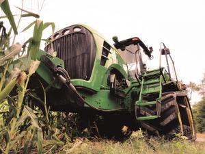 “The system uses the combine’s tow hook but applies the majority of force to the front axle, which allows the combine to be pulled out backward at an angle without the cable interfering with the rear wheels,” says Brutlag.
