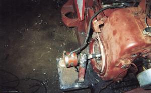 “Now, instead of the breaker points opening 4 times for every revolution of the distributor, the points open only once. To drive the distributor I drilled through the center of the engine crankshaft and installed a 1/2-in. dia. shaft. A length of hydraulic hose forms a coupling that connects the shaft to the distributor. The original clamp on the distributor is used to adjust engine timing.