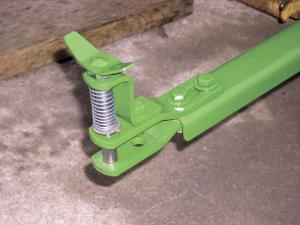 Spring-Loaded Hitch Pin HITCHES “I got tired of having to find a hitch pin whenever I want to hook my tractor up to my wagon and then having to get down off the tractor to insert a safety hitch pin afterward So I eliminated both problems in one shot ” says Steve Nichols Galesburg Ill “I bent a length of flat steel drilled it out and bolted it to my wagon tongue I bought a ‘compression’ spring at Menards and slipped it over the hitch pin along with a washer and cotter pin The spring holds the pin down so it can’t shake or rattle Now the hitch pin can’t get misplaced and there’s no need for a safety pin My spring-loaded hitch pin stays put “I welded a curved handle on top of the hitch pin which makes the pin easier to pull out ” Contact: FARM SHOW Followup Steve Nichols 1248 N Seminary St Galesburg Ill 61401 ph 309 337-7141