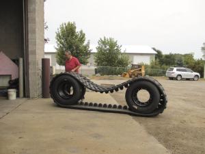 Durability, simplicity and, where needed, redundancy were his goals. The tubular steel frame on the 8 1/2-ft. wide tractor is fashioned after General Electric railroad engines. The design offers strength, yet flexes as it travels over uneven surfaces. The width and the weight (maximum 30,000 lbs.) make it street legal.