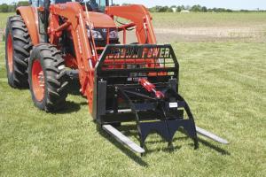 Two fork positions are available. An inner position allows clamping against the forks, while the outer position will allow the grapple to bypass the forks to clamp down on a smaller load. An optional log clamp allows you to clamp onto one object at a time, which is useful when cutting pipe or logs. “It eliminates the need to bend over and use a chainsaw in the dirt,” says Reed. “Coming soon is an additional model with 3 height adjustments with up to a 74-in. opening, which is large enough to pick up a big round bale.”