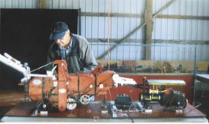 “I run it slow, but it all works,” he says of his 1/8th-scale threshing machine. It’s about 4 ft. long, 8 in. wide and 15 in. tall.