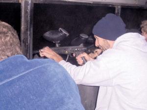 The Fritzlers didn’t just set up a paintball course. They turned three old school buses into mobile arcades with semi stationary targets. Each bus is equipped with 36 paintball guns mounted at shooting stations.
