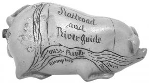 They made elaborate flasks with snakes and other custom designs. For the generic pigs, they often followed a common design called Railroad and River Guides. They’re so accurate that dating them can be done by comparing features on maps. If a bridge isn’t featured, the pig was likely made prior to the year of its construction.