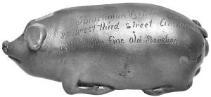 Hagenbuch cites Anna Pottery, Anna, Ill., as one of the more popular sources for flasks. The company made generic pig flasks for sale to the public and also flasks commissioned by distilleries.