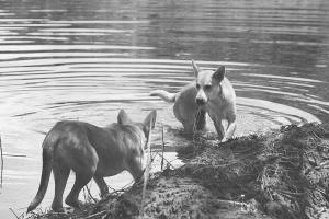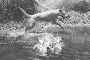 One characteristic is color. In fact, the Carolina Dog is often called the “yaller dog” or “porch dog” in the rural South. Like the dingo of Australia and other known wild dogs, they are often honey-gold or ginger in color and short haired with fish-hooked tails and large, erect ears. Females run 35 to 50 lbs., while males run 40 to 60 lbs. Height at the shoulder is 19 to 24 in. There are many variations in size, color and other characteristics. For example, Carolina Dogs have a recessive gene for black and tan coloring.
