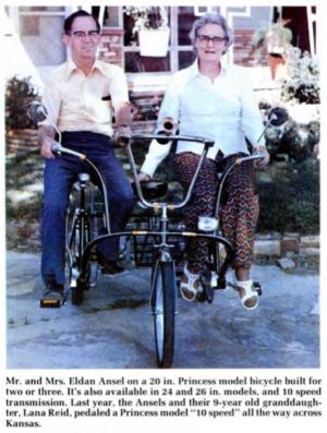 “I’m really surprised no one thought of making bikes like these before. They’re a family-type fun bicycle which all members of the family – from grandchild to grandmother – can use and enjoy,” says Eldan Ansel, pioneer combine and tractor cab manufacturer at Ulysses, Kan., who sold his Ansel manufacturing plant in 1965.