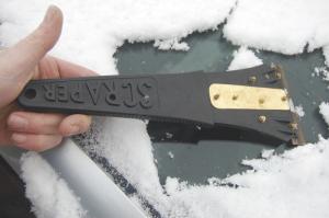 “I live near a river in a shallow valley so I often get a lot of fine frost on the windshield.  This scraper is about a foot long and has a 4-in. brass blade that works much better than any plastic scraper I’ve ever tried,” says Sewell.   “The blade broke out of the plastic after a couple years so I drilled holes to bolt it back in place.  In fact, I’ve repaired it a couple times over the years.  It still works fine but I’d like to find a new one.”