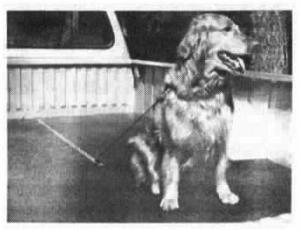 Called the Leash O'Life, it consists of an aluminum track that mounts in the center of the truck bed. The dog is leashed to a short cable that's anchored by a plastic slider that glides easily along the track.