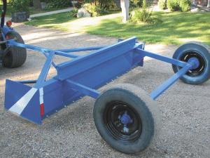 “We use it to maintain a 1/4-mile stretch of road in a high traffic area. It works like a little land leveler,” says Galde. “I use my 20 hp Ford 1210 diesel tractor to pull it. Two of my neighbors also use it and pull it behind their Ford New Holland Boomer tractors.”