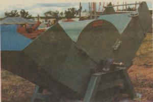 "Compared to vacuum grain movers, which cost $10,000 or more and have a top capacity of 40 tons per hour, the Grain Thrower sells for only $2,000 and will move up to 90 tons per hour," Phil Andrews, marketing director for Francis Engineering, the manufacturer, told FARM SHOW. It's especially suited for moving grain into but not out of flat storage, notes Andrews. He adds that it causes very little kernel damage to the grain. "Only a small percentage of kernels actually come in contact with the metal paddles. Consequently, there's less metal to kernel contact than you get with a regular spiral auger."