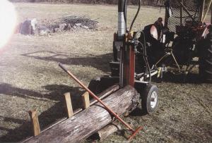 I use my Brave 22-ton log splitter in the vertical position to make split rail fence. I first split one end of a log and then drive wedges into the crack to finish the split. I could use a chainsaw instead of the splitter to open up the log, but the splitter makes it easier. (Robert L. Stone, 1504 Dillon Rd., Seymour, Md. 65746 (ph 417 767-4395)