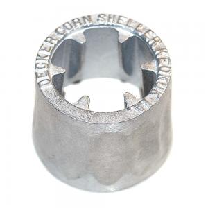 The 2 1/4-in. high sheller is angled, with the mouth having a 2 3/4-in. outside diameter. It narrows to 2 1/2 in. at the exit. Rubbing the kernels against the ridges releases them gently from the ear. That’s important to seed savers, says Rodney Barbour, Agri Supply.