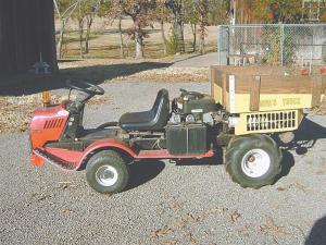 In addition to the dual control hydrostatic, the yard truck also features AC electrical outlets and a 30-in. long by 36-in. wide dump box. Components were salvaged from a variety of sources to make the one-of-a-kind utility vehicle for his wife.