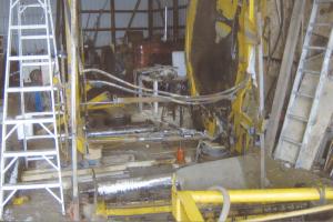 He cut 12 in. off all the roller shafts and roller tubes and welded them back together. He cut the belt guide down to 48 in., put a rod inside, and welded it on.