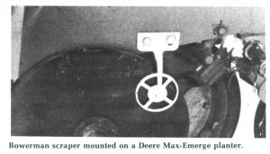 "They're selling like hotcakes for grain drills. Now, thanks to response from FARM SHOW readers, we've designed a scraper for Deere Max-Emerge planters," reports Galen Bowerman of Dawson, N. Dak., whose unique rotating disk scrapers were first featured in FARM SHOW three years ago.