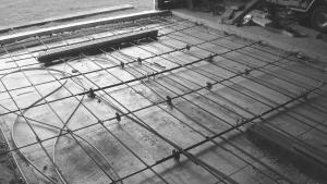 The crib’s interior walls were originally supported by a 2 by 8, but the sill plate was poured into the floor. Claussen rented a diamond cutter and jackhammer to remove the sill plate, then laid rebar in the alley and tied it to wall bolts. He put 6 in. of polystyrene on top of the old cement, then installed radiant floor heating and poured 8 in. of cement on top of it. He also installed floor drains.