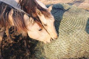 The Cinch Net slow feeder hay nets are designed for use with square bales, round bales, or even hay by the flake. The Cinch Net is quick to install and remove. No tools required, no heavy materials, and it’s portable. Custom netting is available.