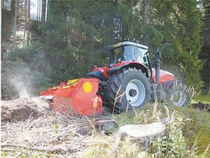 It has the ability to take down standing trees, mulch wood up to 16 in. in diameter, crush stones up to 12 in., and work everything into the soil to a depth of 9 in. on the first pass, and up to 18 in. deep on the second pass.