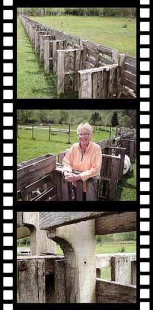 Karen Biondo of Vashon Island, Wash., used screwed-together pallets to build a solid fence for her pigs and goats. The pallets lay on their edges in a straight line, with pallets placed crossways between them to help stabilize the fence. All the pallets are screwed and bolted together.
