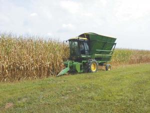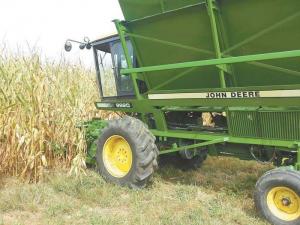Jim Anderson converted a used cotton picker into a silage chopper with a box that dumps. The self-propelled 2-row chopper doesn’t knock down corn rows like his pull-type chopper did. It also didn’t cost him as much as a conventional chopper.