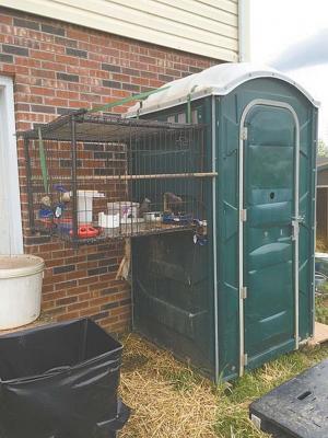 Larry cut a hole in one side of the coop and hung an old 4 by 4-ft. dog kennel against the hole. A door in the side of the kennel gives the Lesters easy access. The kennel floor holds food and water as well as giving the birds safe access to fresh air and sunlight.