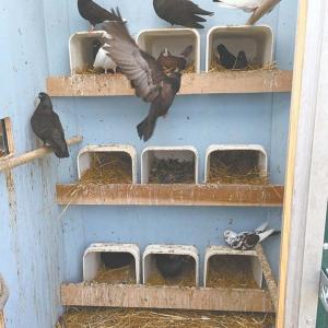 “The birds love their house,” says Susan. “They seem very happy and content. Four of the females have already hatched out babies.”