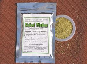 Extremely high in antioxidants, vitamins and minerals, Salad Flakes have one appealing characteristic to fussy eaters — there is no taste. A pinch of dried greens is equal to eating a handful of fresh greens, so it appeals to health-minded adults as well.