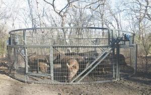 “With conventional traps, non-target animals can’t get out and hogs often won’t come in,” explains Josh Gaskamp, Noble Foundation. “If a group of wild hogs gets trapped, the ones who aren’t caught get educated to stay away in the future.”